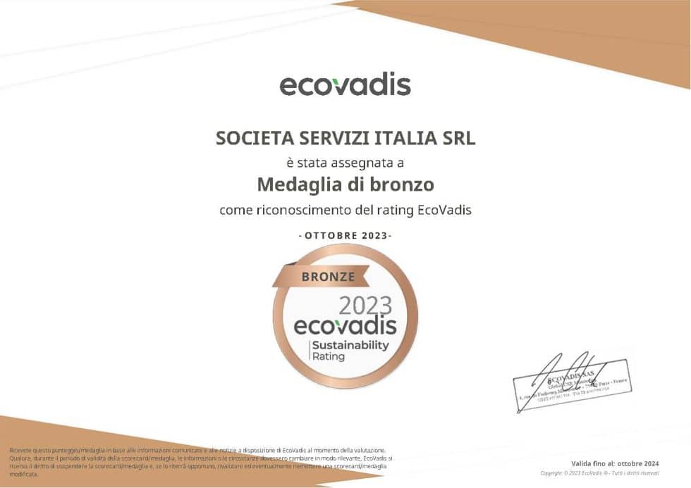 Società Servizi Italia è stata premiata con la prestigiosa medaglia di bronzo EcoVadis in riconoscimento del suo punteggio di sostenibilità
